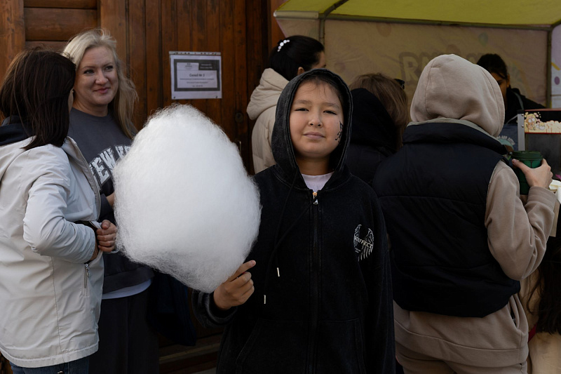 Наших маленьких гостей можно было увидеть возле яркой палатки, в которой раздавали угощение, а именно сладкую вату и поп-корн.