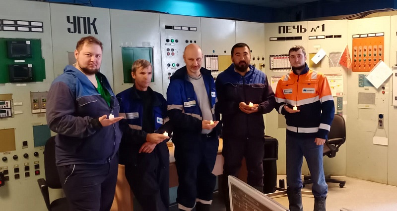 Участники акции, газовики, на всех объектах Общества зажгли свечи в знак памяти о героизме людей, защитивших ценою своей жизни будущее поколений.