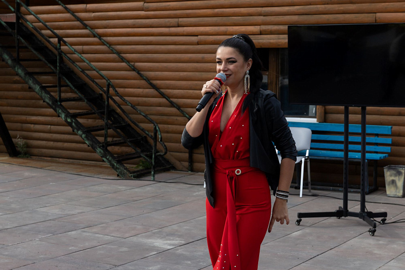 Евгения Медведкова, инженер 1 категории отдела управления запасами управления материально-технического снабжения исполнила сольно два музыкальных номера, затем к ней присоединился Никита Луценко, начальник управление технологического транспорта и специальной техники, они в дуэте исполнили песню «Районы, кварталы», но на новый лад, в формате Газовиков.